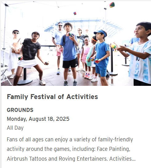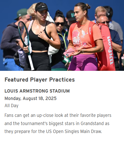 Throughout the week of August 18-23rd the qualifying tournament is free and open to the public on courts 4-17. Everyday, you can watch players practice both at Louis Armstrong Stadium and the Grandstand. There are also kid-friendly activities around the grounds, including Face Painting and roving entertainers. There is music at the Fountain Plaza during the day and Heineken Happy hours from 5-7pm. Merchandise and food vendors are open and ready to sell you tasty food and US Open swag.