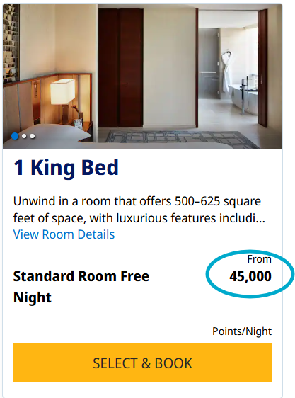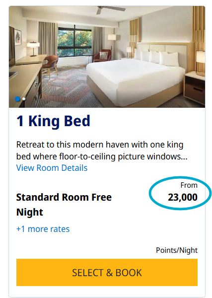 Determine how many points you will need to transfer by getting as far as you can in the hotel booking process. There might be terminology like ‘From 23,000 points’, so you cannot assume that each night has the same points price. Arrive at the page where you see the total points needed to complete the booking. You can also look at the each night individually, or at the award calendar.