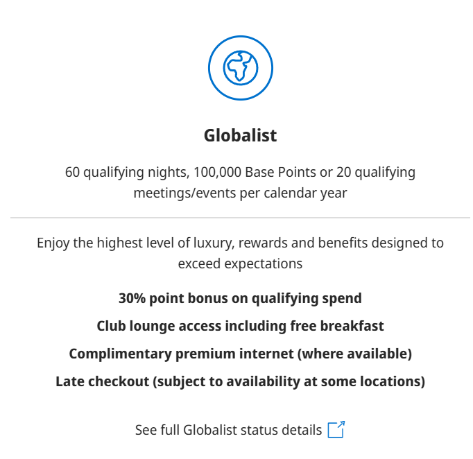 At just 10 nights per year, you get Discoverist Status which sets you up for 2:00pm late check-out where available. The most valuable tier is Globalist, earned after 60 nights per year and includes room upgrades, free breakfast or club access, and free parking on award stays. You also receive Gift of Honors awards which you can give to family or friends so they can experience Globalist status for their upcoming Hyatt stay.