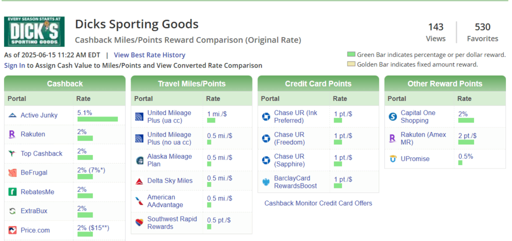 Here I will search for Dick’s Sporting Goods and see my potential earning rates.