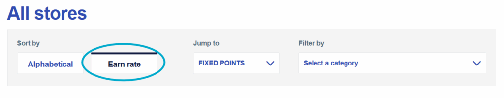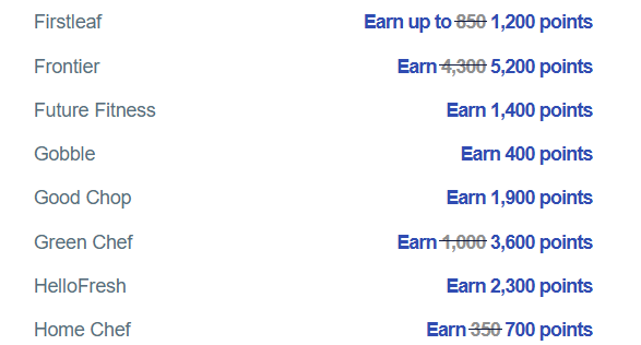 If I am serious about earning extra points – I like to “View all stores” then sort by Earn Rate. Here are some examples where you can sign up for a meal subscription and earn thousands of points!